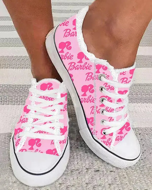 Barbie Figure Letter Raw Hem Lace-up Sneakers