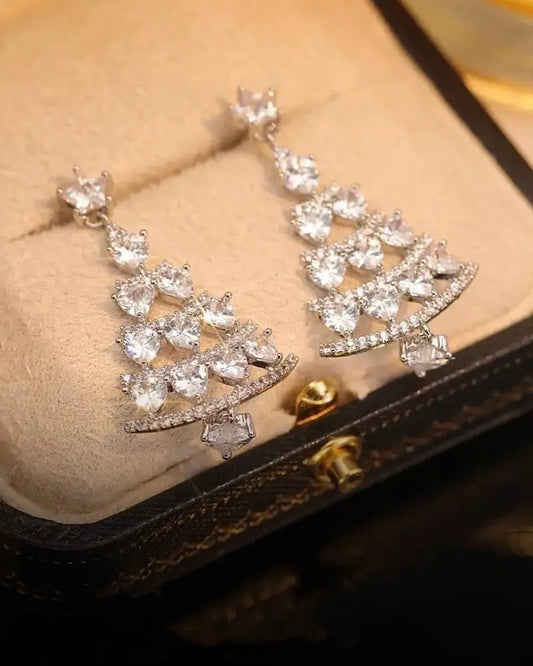 1Pair Christmas Tree Shaped Rhinestone Star Drop Earrings