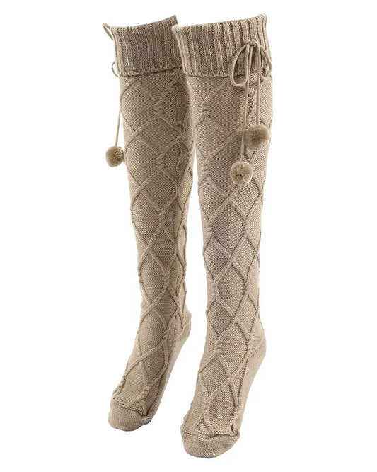 1Pair Braided Bowknot Decor Skinny Long Socks