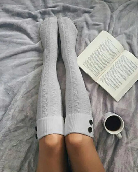 1Pair Button Design Knit Long Socks