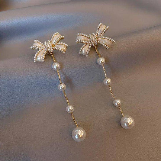 925 Silver Butterfly Pearl Long Pendant Earrings
