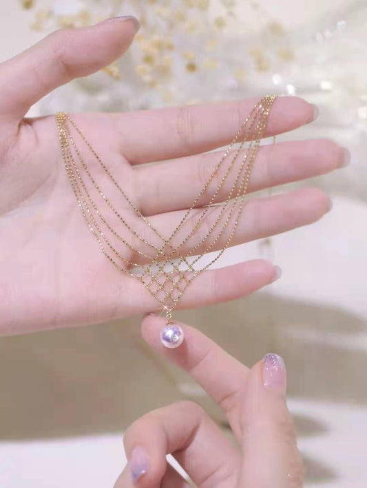 925 Silver 22K Gold Plated Necklace with 5A Pure Pearl Pendant