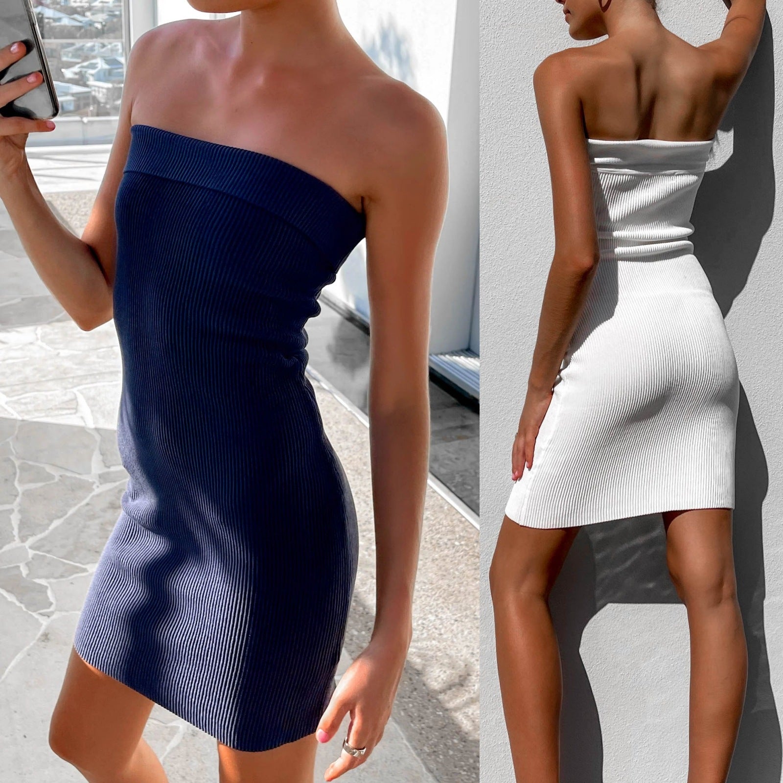 Off Shoulder Knitted Ribbed Neckline Hip Dress CD210